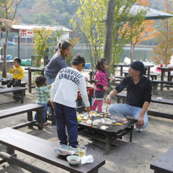 生駒山麓公園内に泊まるテント、ロッジなど開放的な屋外施設に宿泊する「野外活動センター」。ワーケーションや団体利用にもおすすめの屋内「ふれあいセンター」での宿泊ができる。